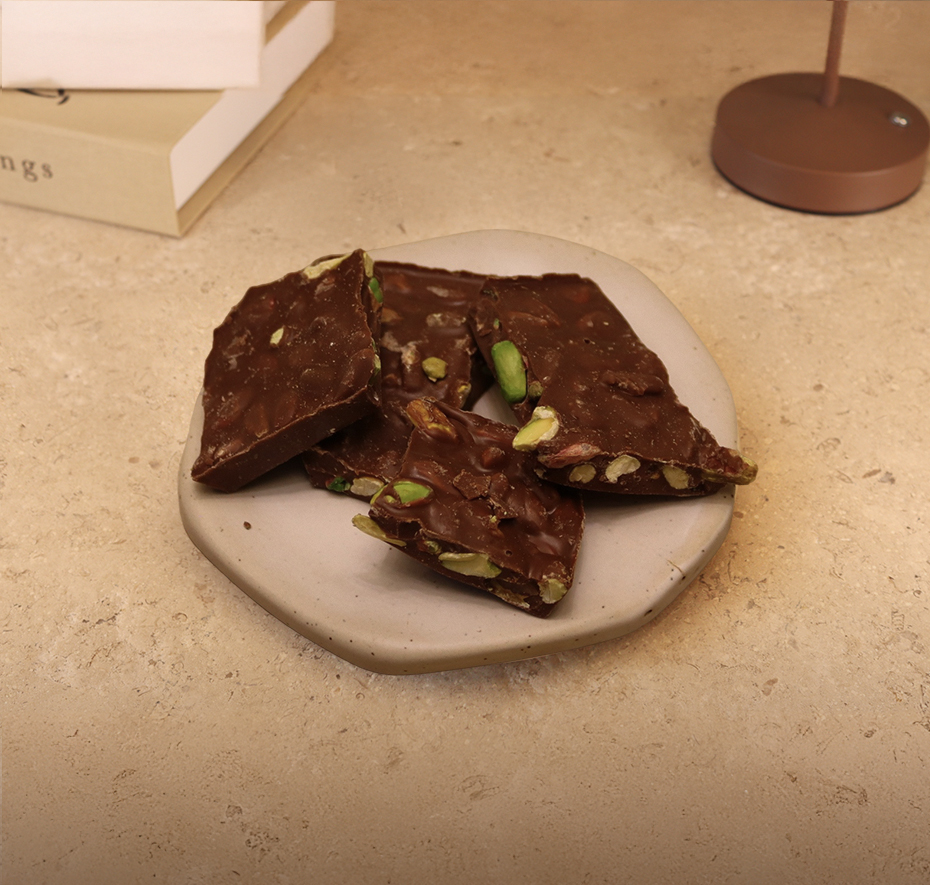 Antep Fıstıklı Sütlü Kırma Çikolata Tabağı (100 Gr)