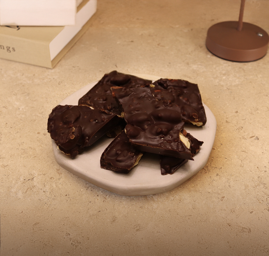 Portakallı Bademli Bitter Kırma Çikolata Tabağı (100 Gr)